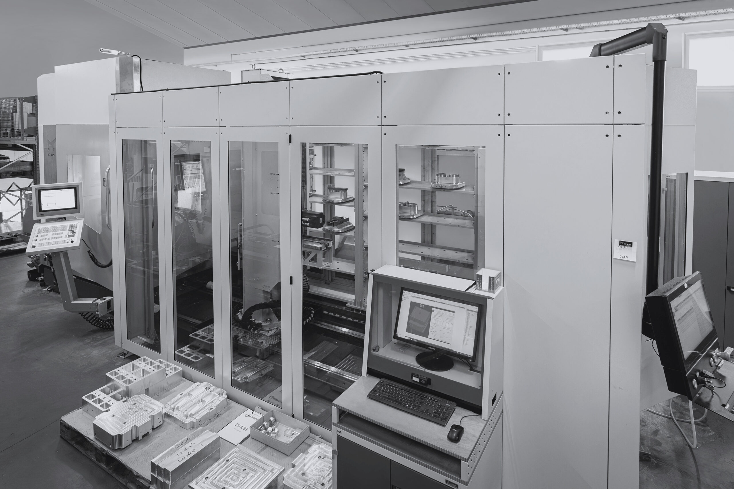 Unsere vollautomatisierte 5-Achs-Fräsmaschine mit Palettenwechsler läuft auch dann weiter, wenn andere längst Feierabend haben.